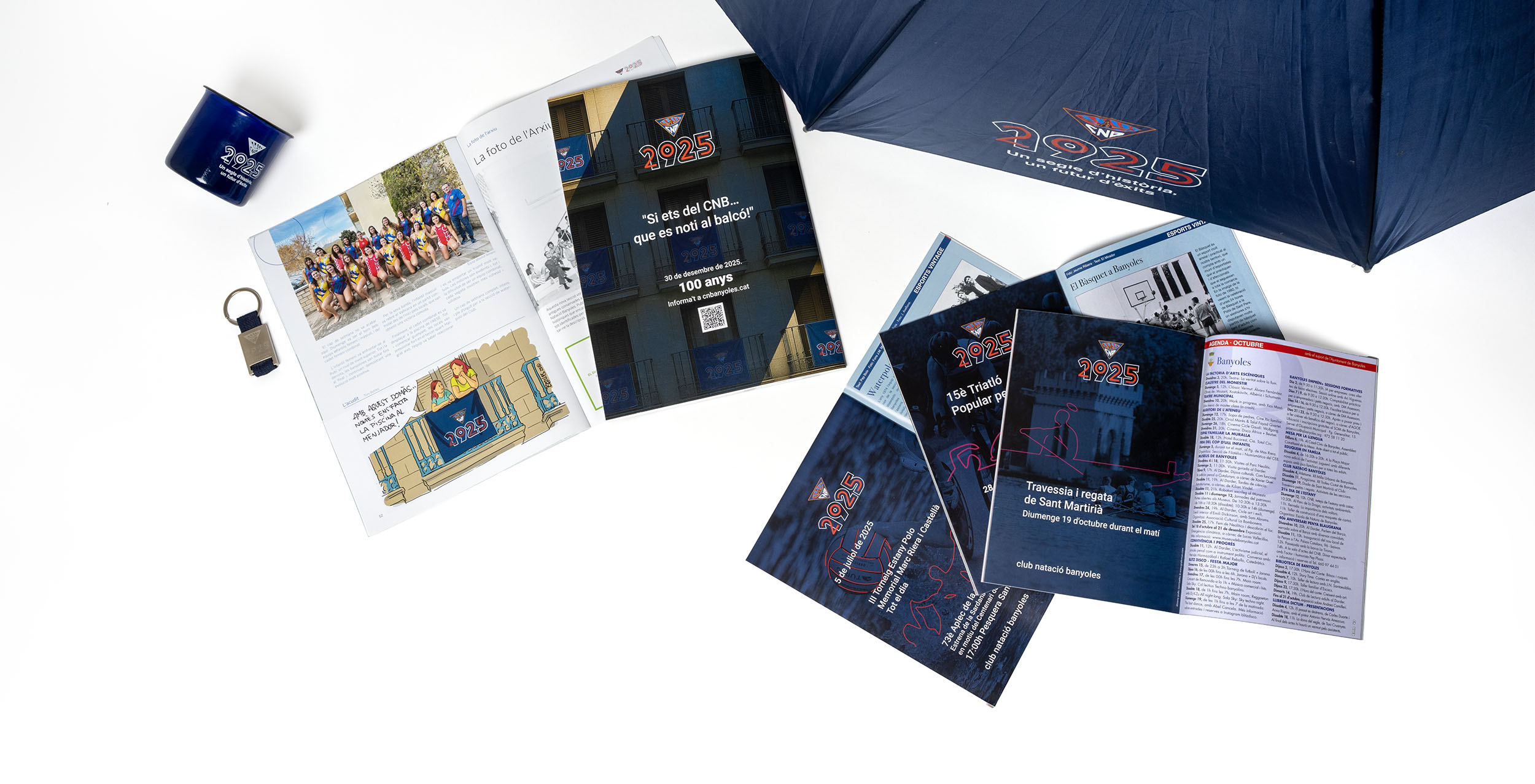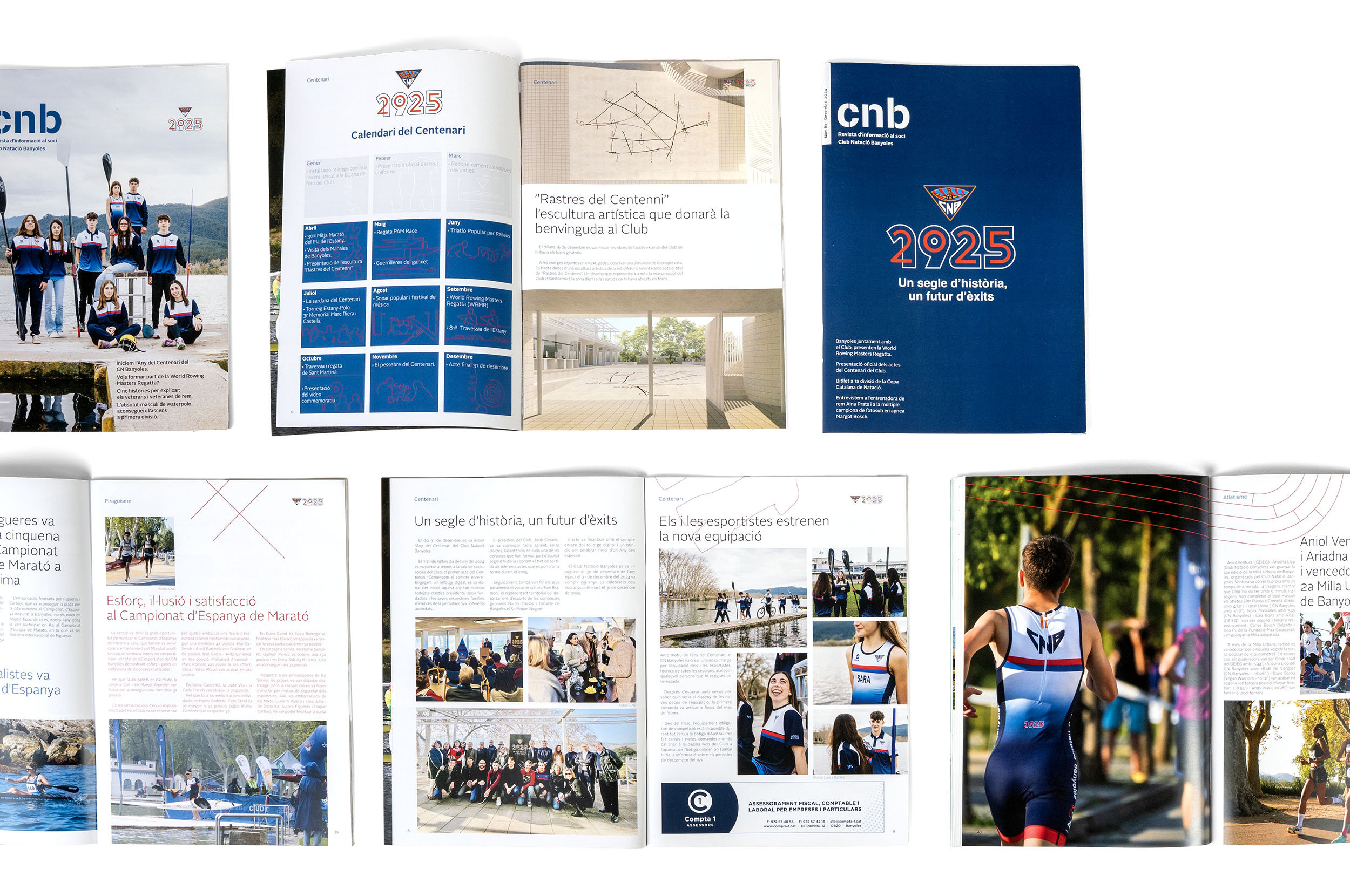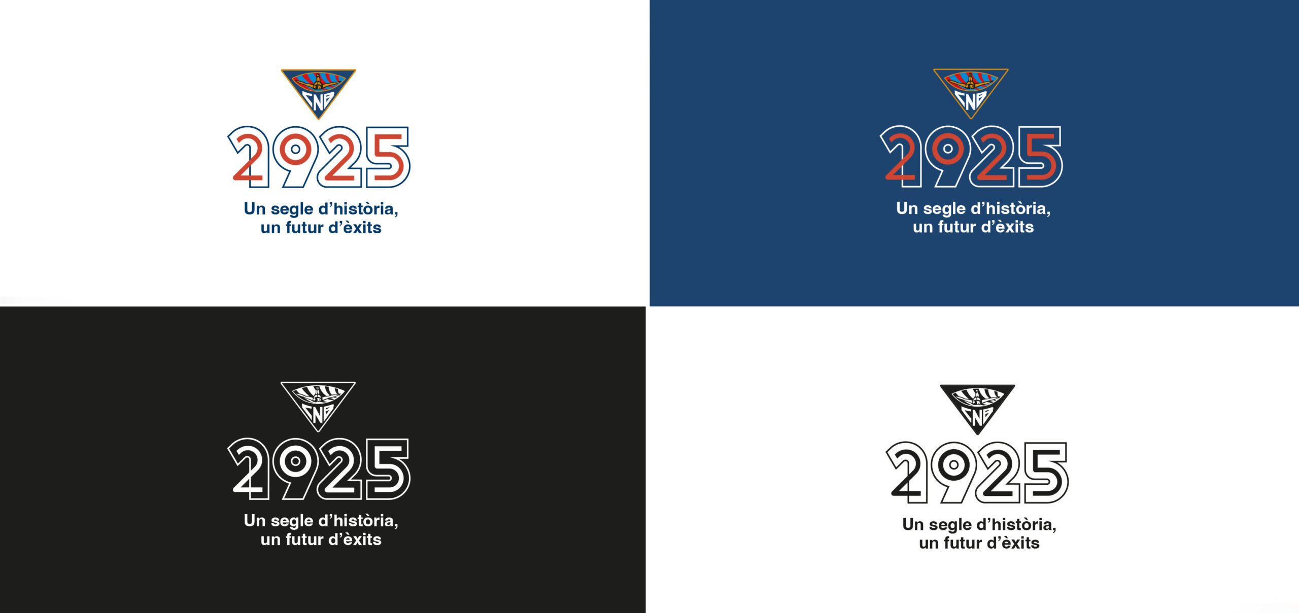 La identitat parteix de la superposició de 1925 i 2025 com a síntesi visual del pas del temps. L’escut històric es manté com a eix de continuïtat mentre el nou llenguatge gràfic projecta el club cap al futur. El sistema de color i tipografia garanteix coherència i adaptabilitat, permetent que la celebració habiti l’espai i es desplegui amb claredat en tots els formats.